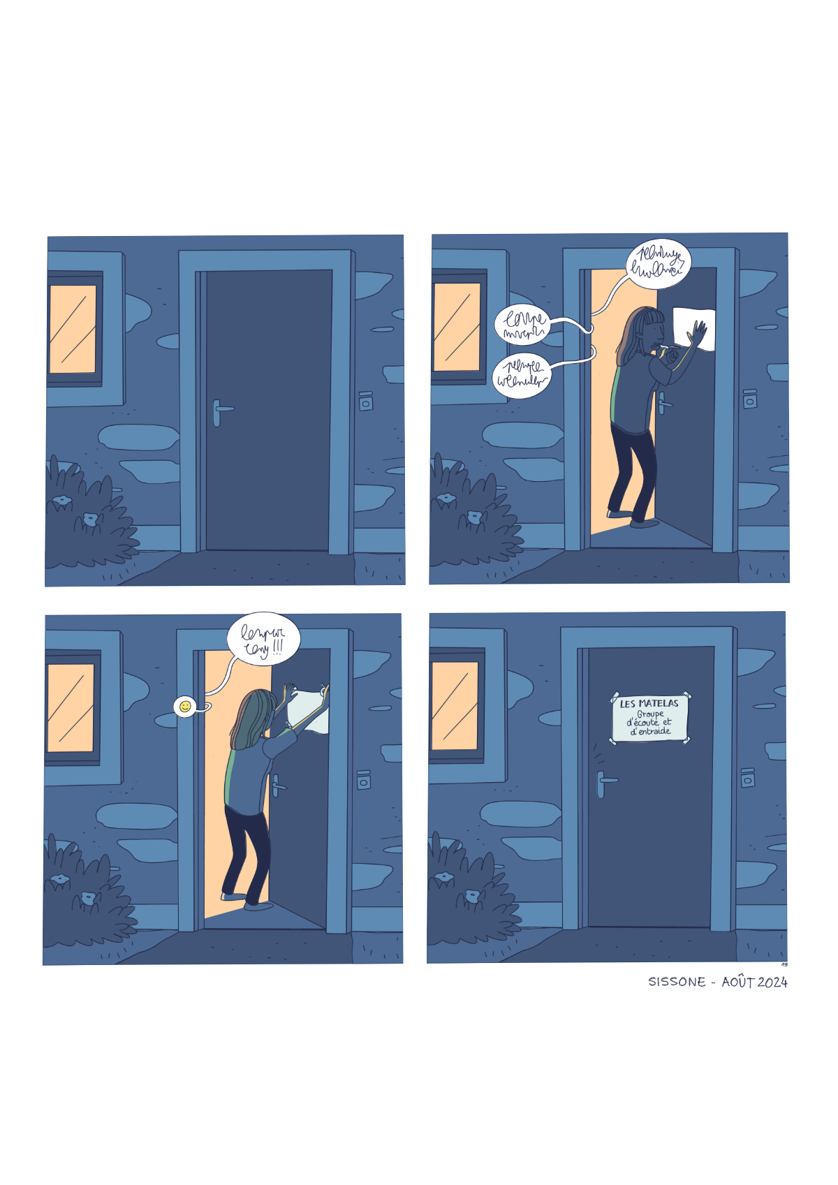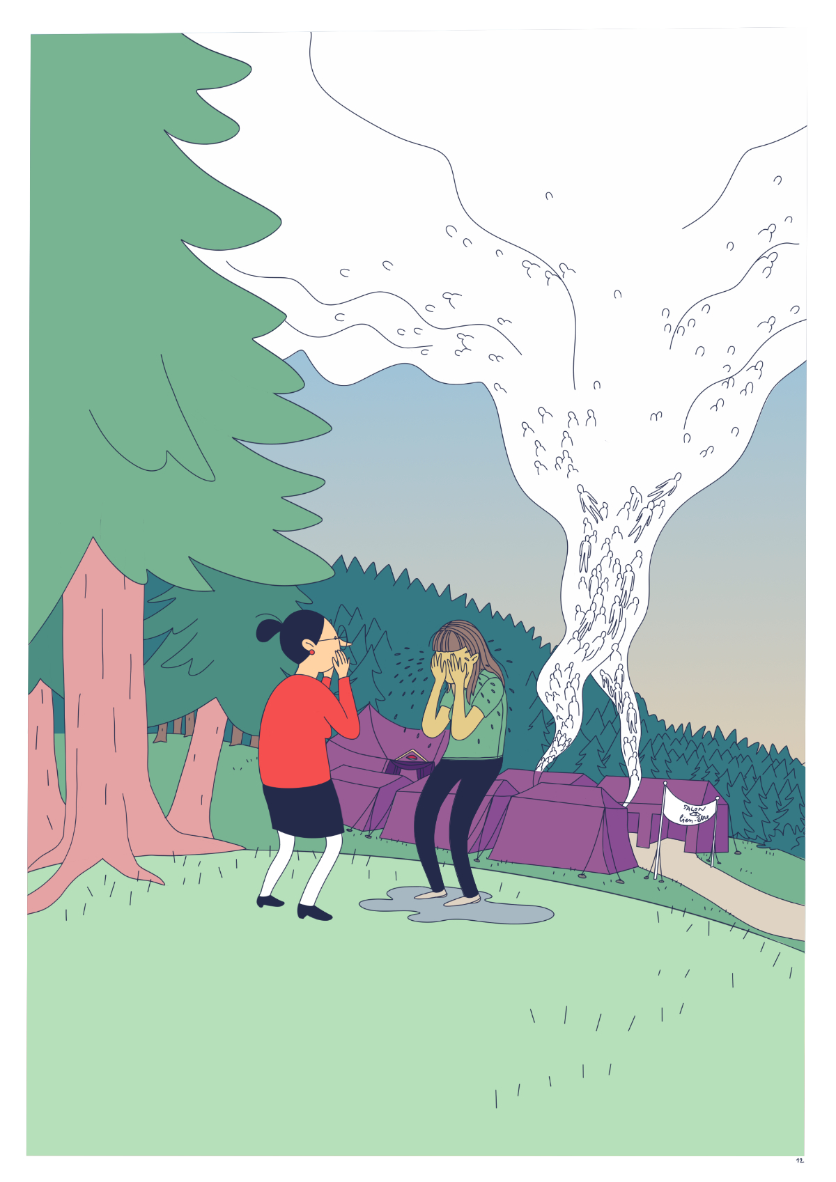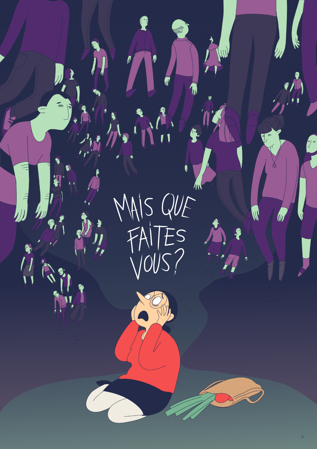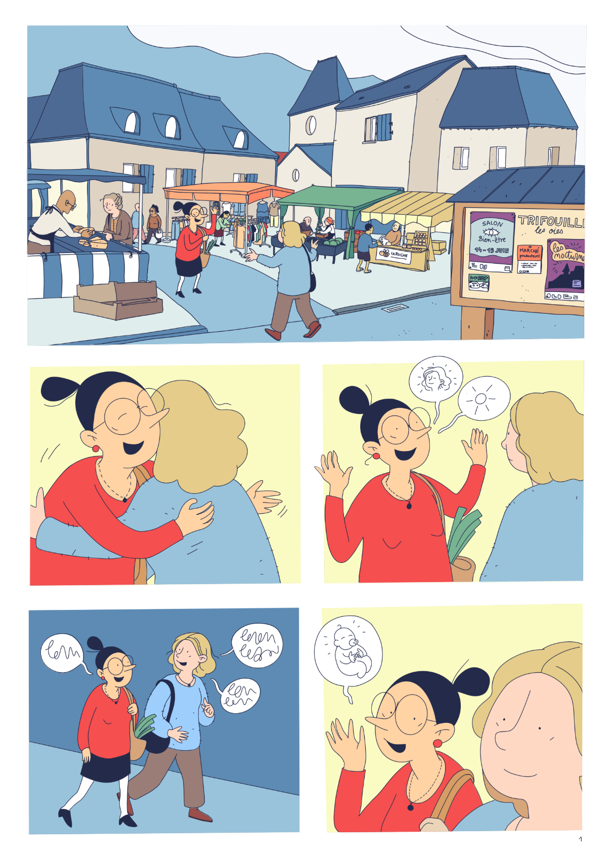 J’ai tout d’abord travaillé une BD de 20 pages, avant de me rendre compte qu’il ne fallait qu’une seule planche de BD :’) J’ai donc proposé une version condensée de la BD - qui bien sûr n’est pas du tout satisfaisante - et un dessin seul qui fait aussi office d’introduction à la BD complète.
