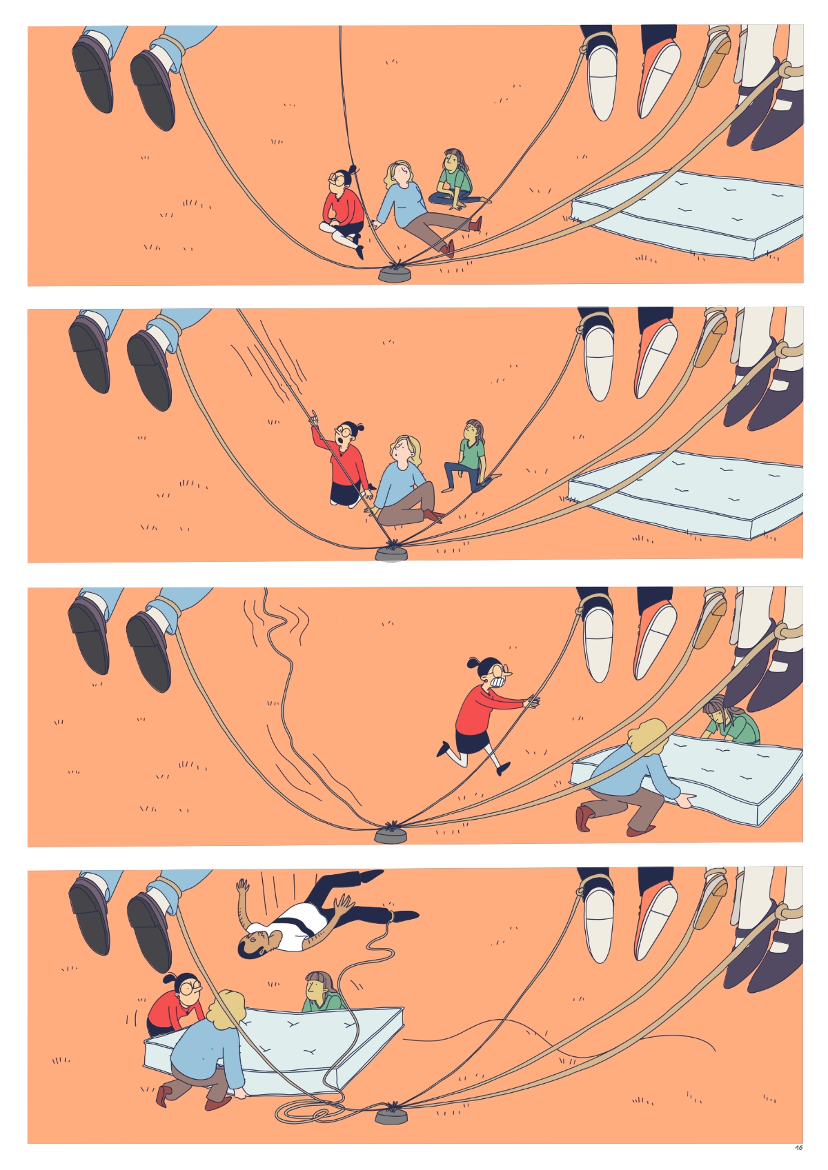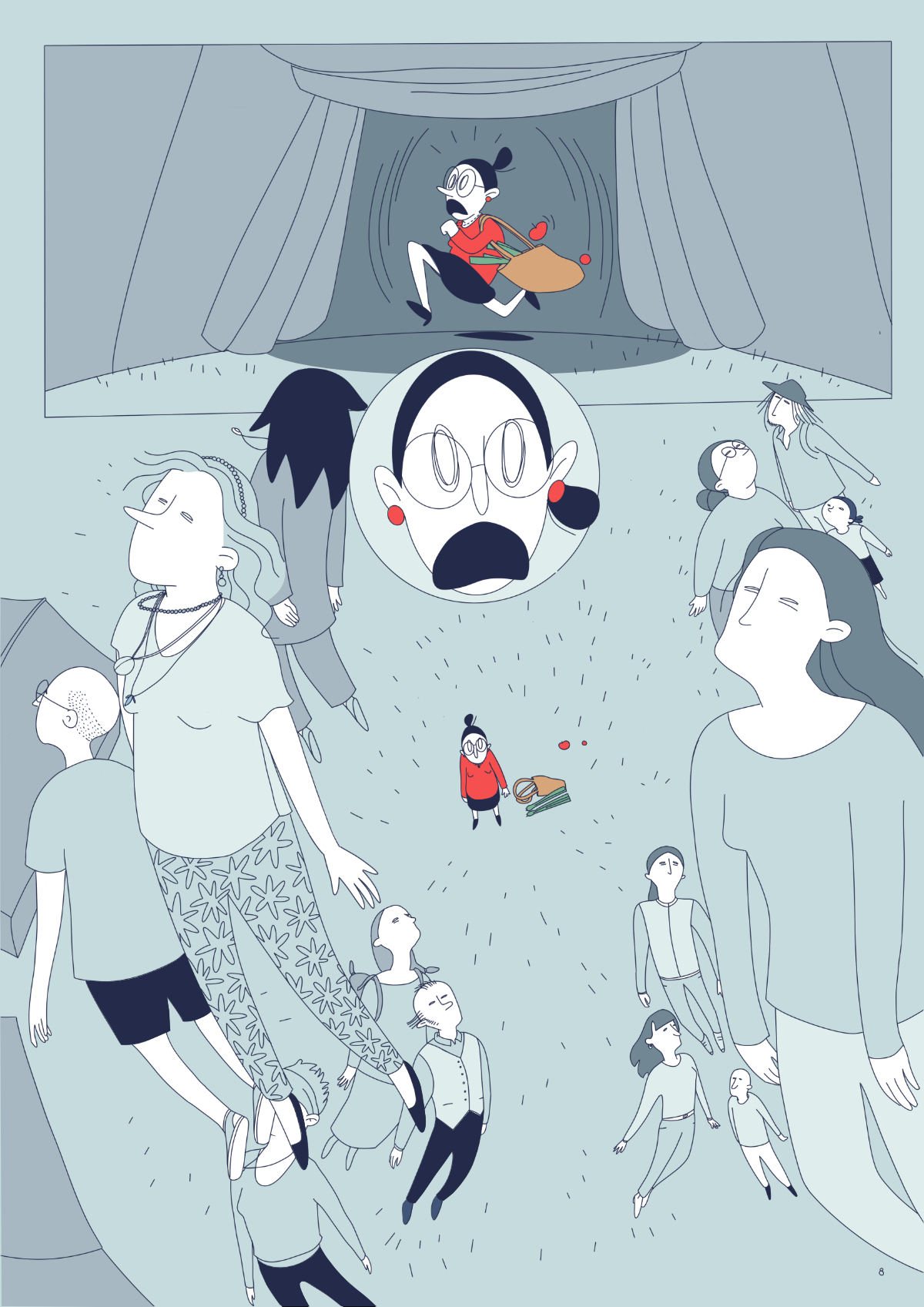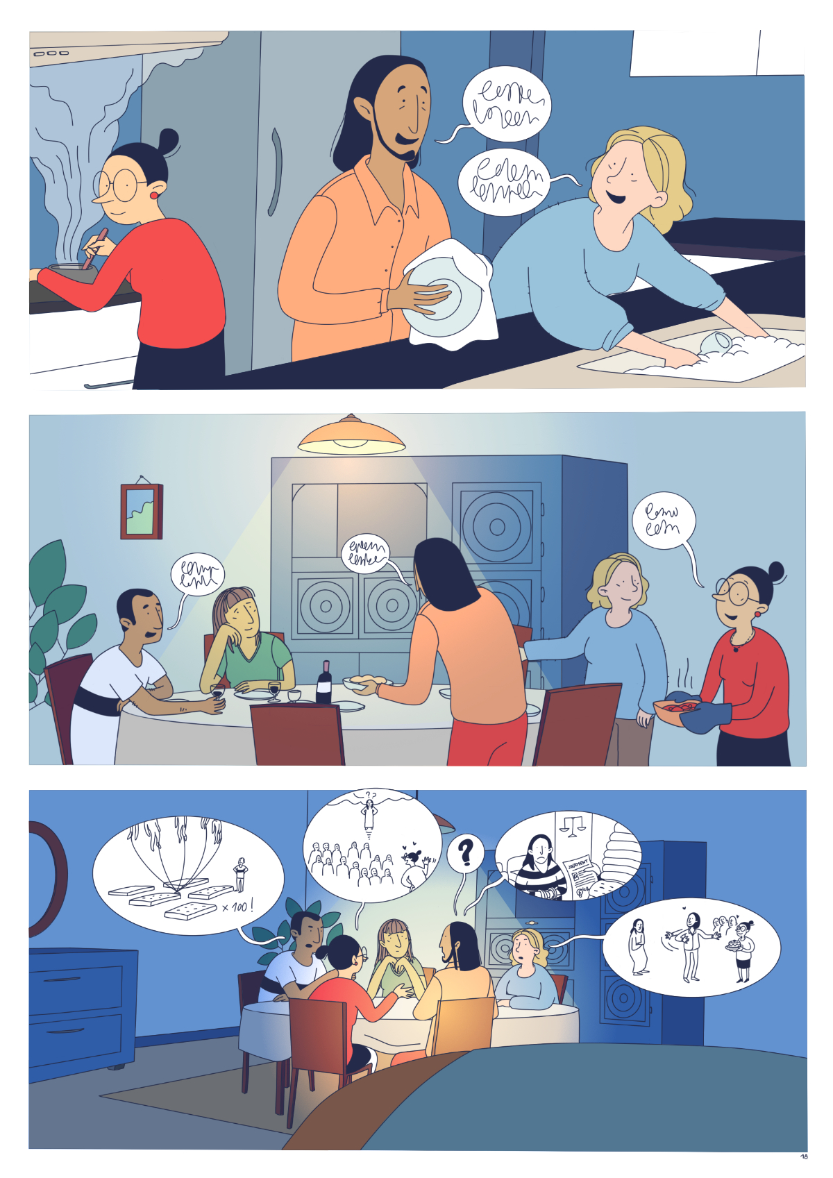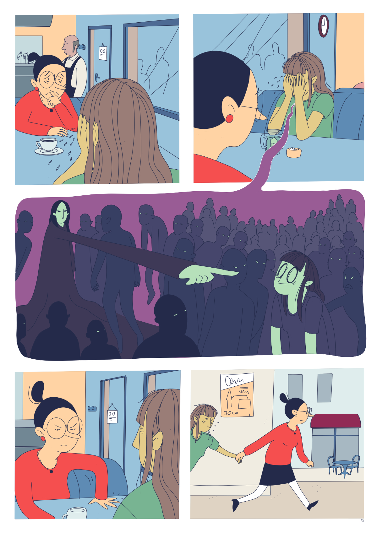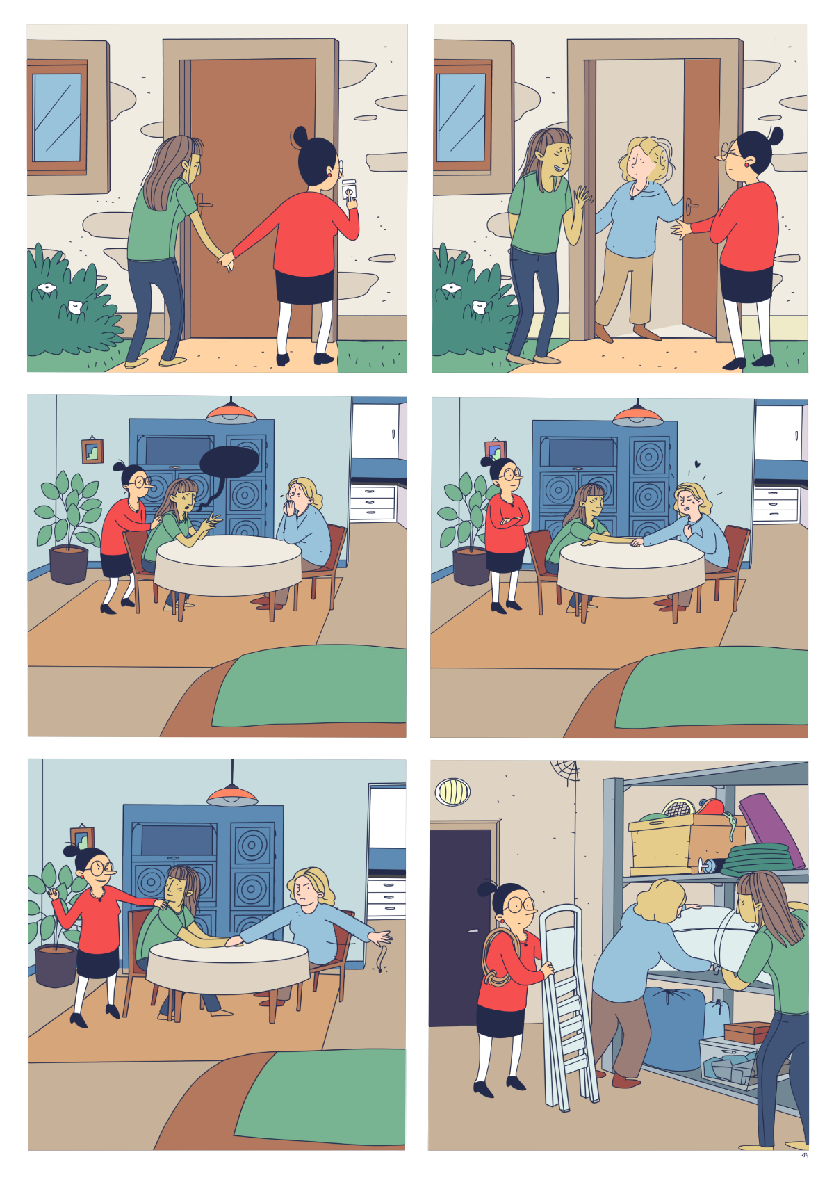 J’ai tout d’abord travaillé une BD de 20 pages, avant de me rendre compte qu’il ne fallait qu’une seule planche de BD :’) J’ai donc proposé une version condensée de la BD - qui bien sûr n’est pas du tout satisfaisante - et un dessin seul qui fait aussi office d’introduction à la BD complète.